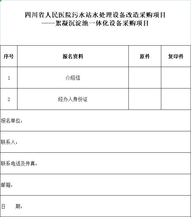 項(xiàng)目名稱:四川省人民醫(yī)院污水站水處理設(shè)備改造采購項(xiàng)目——絮凝沉淀池一體化設(shè)備采購項(xiàng)目(第二次)
